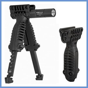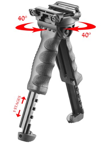 The only fully functional bipod designed for precision shooting built into a vertical foregrip. Built for designated marksmen and those operating in urban settings who need to transition from close fighting to precision shooting. Issued to Israeli Special Forces and many US military units. An ergonomic foregrip based on our popular TAL-4 grip. A touch of a button transforms the grip into a sturdy bipod. Legs are independently adjustable for height. Bipod allows slight pivot to adjust cant. Wide stance offers stability lacking in other grip bipod designs. Dual pressure switch cavities. Mounts with quick release button or additional locking screw. Aviation-grade Aluminum, steel, and MIL-SPEC reinforced polymer composite.This website is a participant in the Amazon Services LLC Associates Program, an affiliate advertising program designed to provide a means for sites to earn advertising fees by advertising and linking to amazon.com